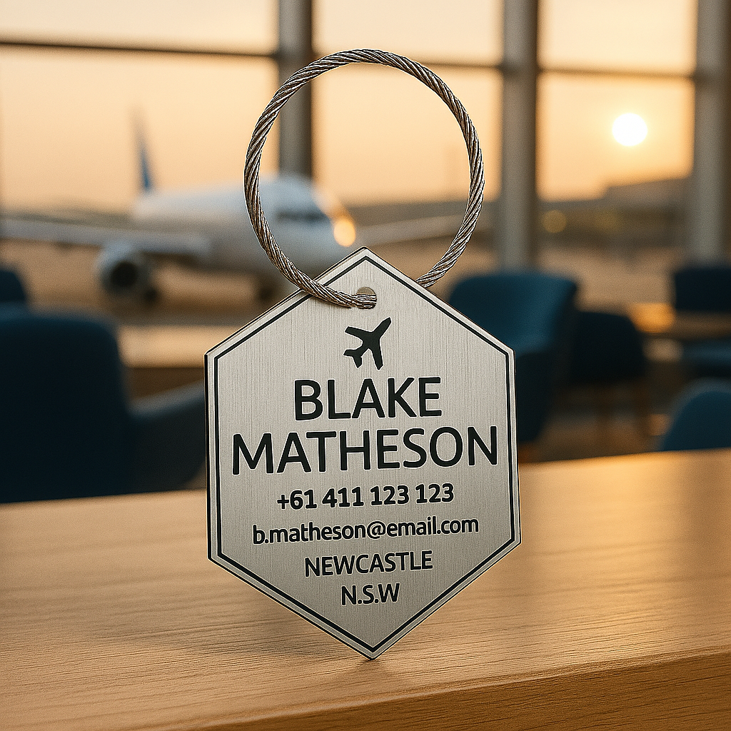 Proudly made in Australia, each luggage tag is laser-cut with precision and finished to ensure a premium, polished look. Travel in style with this premium custom luggage tag!