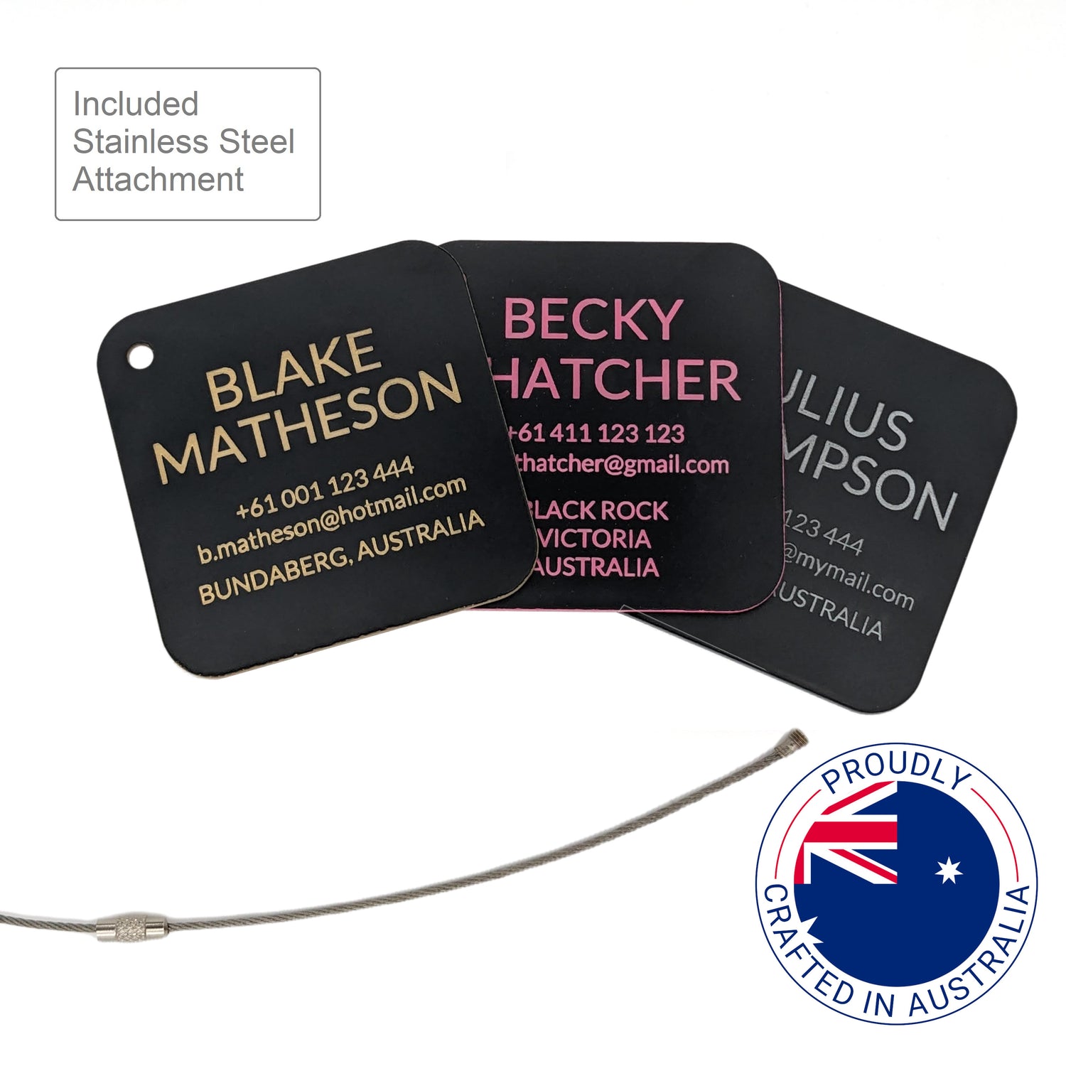 Proudly made in Australia, each luggage tag is laser-cut with precision and finished to ensure a premium, polished look. Travel in style with this premium custom luggage tag!
