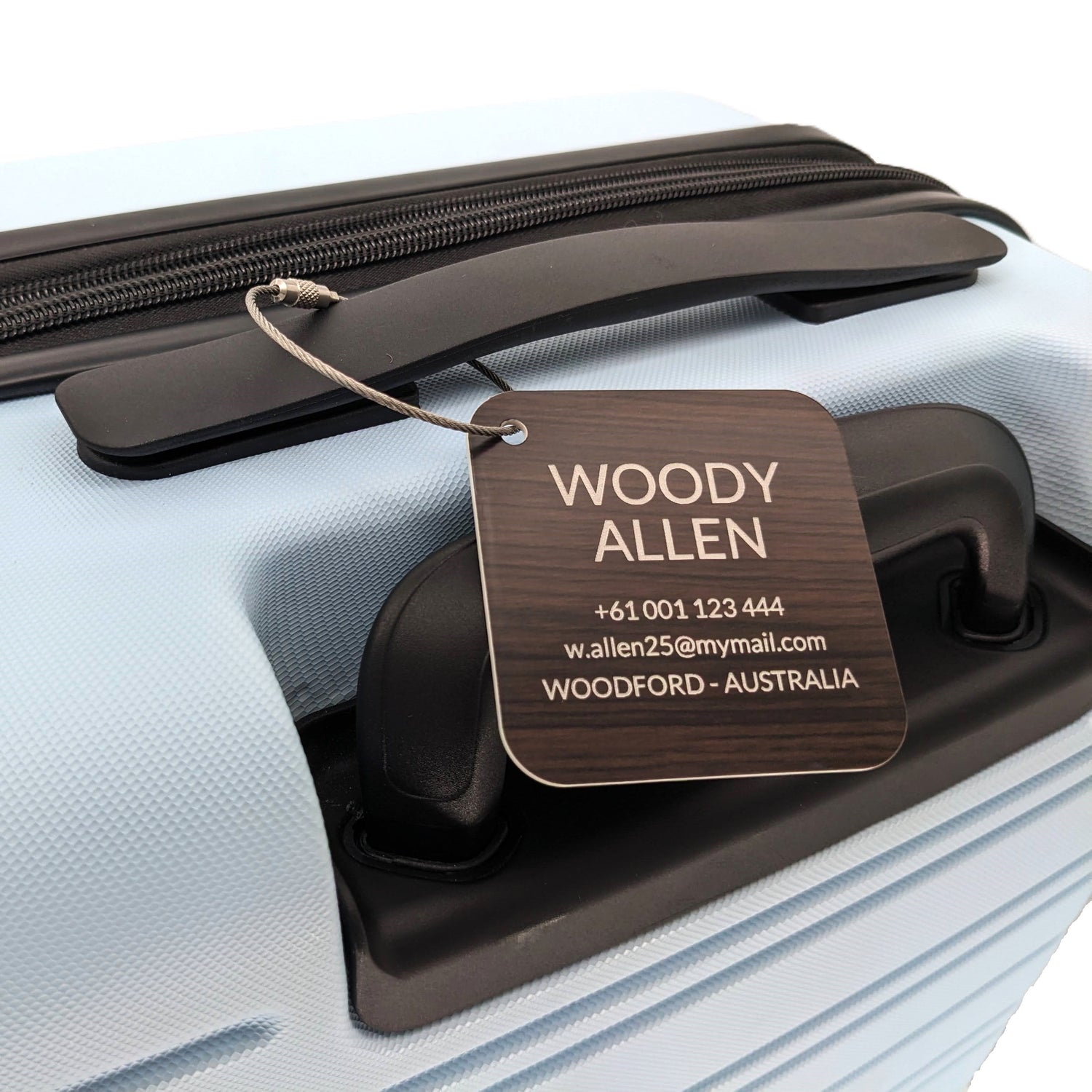 Travel confidently and let the understated luxury of our Dark Timber Wood Grain Luggage Tags be a stylish reflection of your journey.