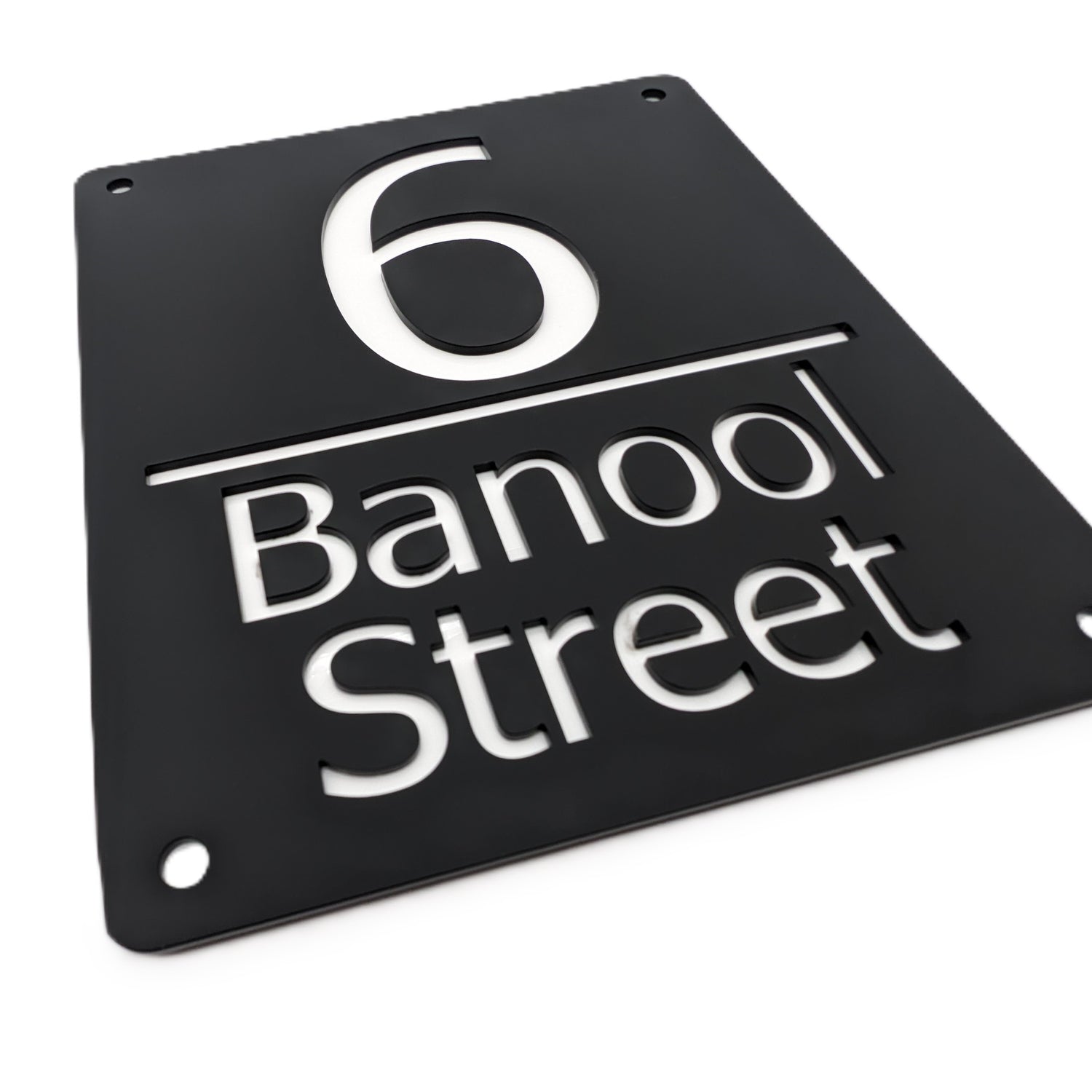 Enhance your home’s entrance with this sleek, modern address sign, precision-crafted from premium Australian-made UV-stabilised cast acrylic. Measuring 210mm x 250mm, this design features two robust layers of 3mm acrylic (6mm total thickness) for a refined, dimensional effect.